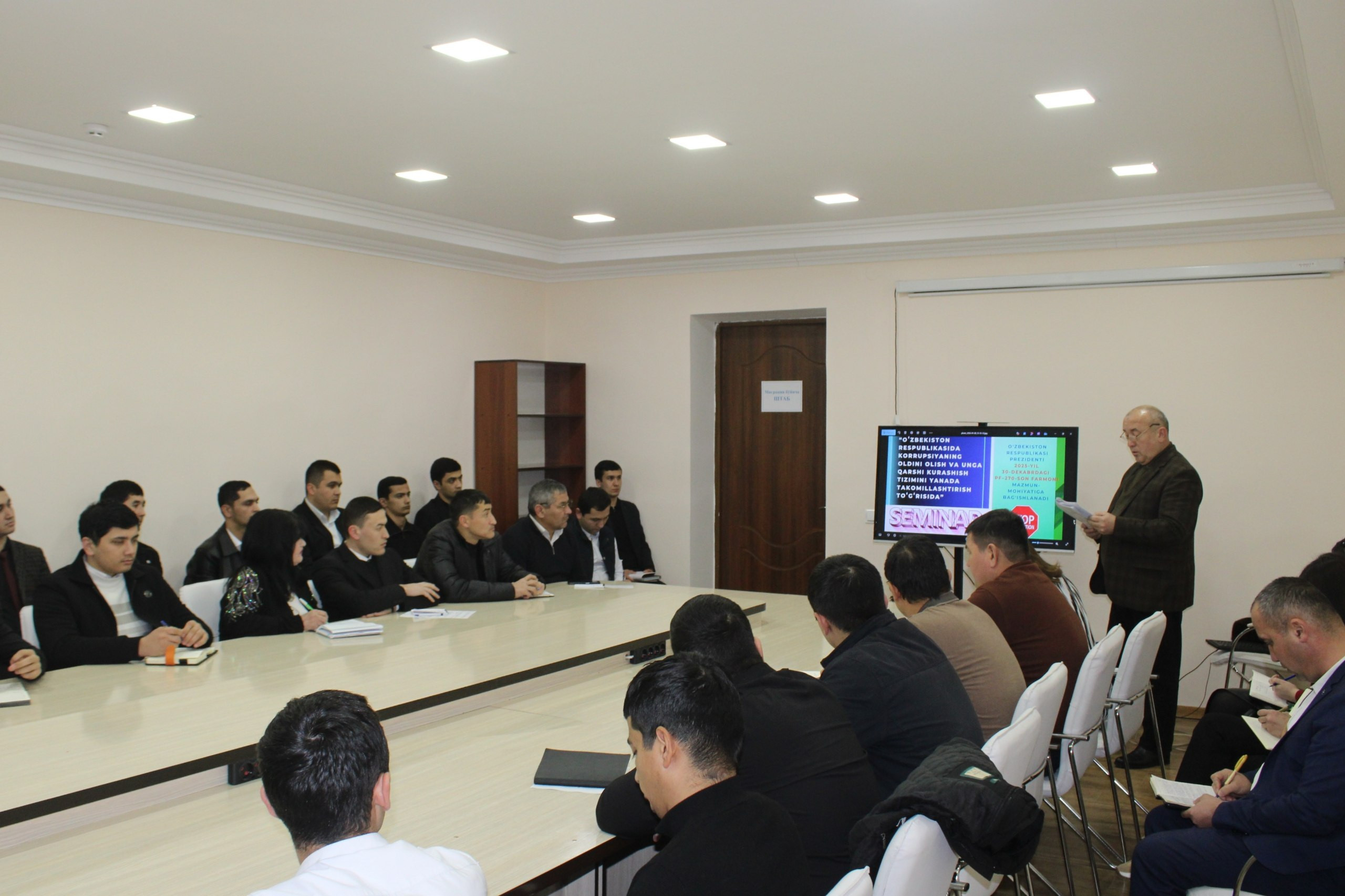 🟢Семинар давомида ПФ–270-сон Фармонининг мазмун-моҳияти, унинг давлат органлари фаолиятига татбиқи ҳамда коррупциявий хавфларни камайтириш бўйича аниқ вазифалар муҳокама қилинди.